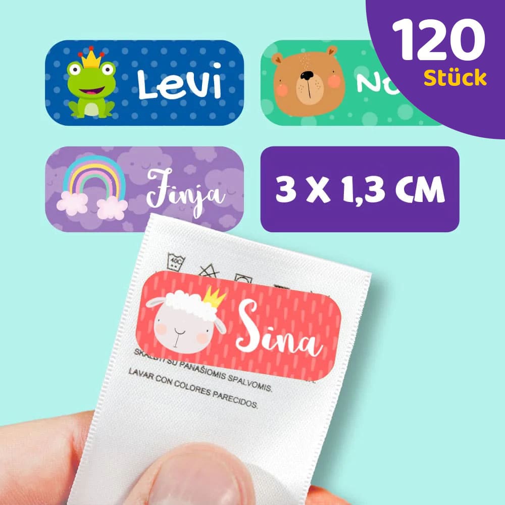Einfach kleben statt bügeln. Markier, was dir wichtig ist mit unseren Textiletiketten zum Aufkleben. Klebeetiketten halten auf dem Wäscheetikett deiner Kleidung. Für Kindertagesstätte, Kindergarten, Schule und Freizeit. Du kannst deine Shirts, Jacken, Schuhe und vieles mehr bekleben. Und weil der Geschmack von Mädchen und Jungen nunmal verschieden ist, kannst du zwischen vielen Motiven, Farben, Formen und Schriften wählen. Darum findet jeder genau seinen Aufkleber. Schließlich soll ja nichts verloren gehen. So sieht jeder sofort, wem was gehört.